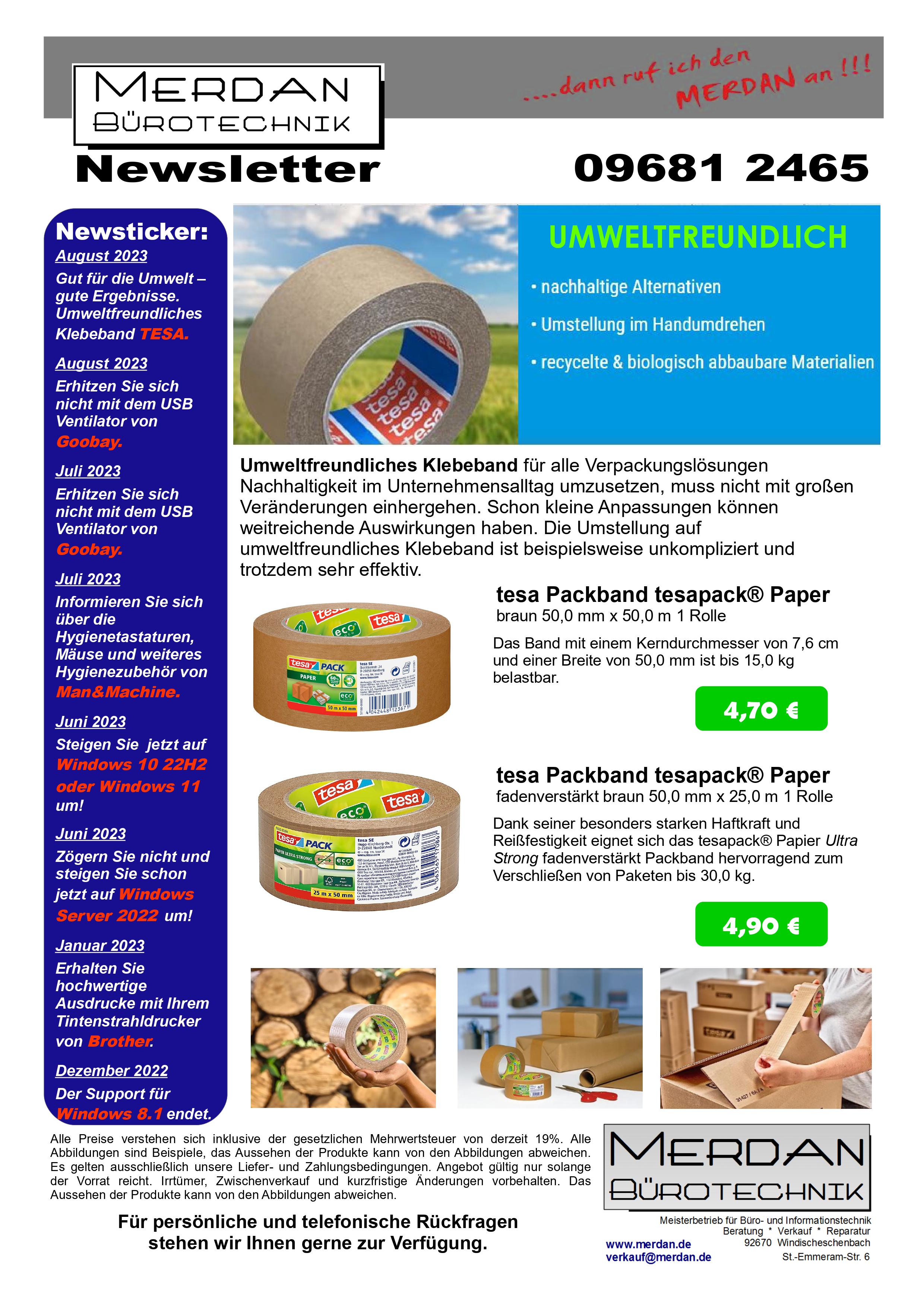34KW2023 Newsletter TESA Umweltfreundliches Packband