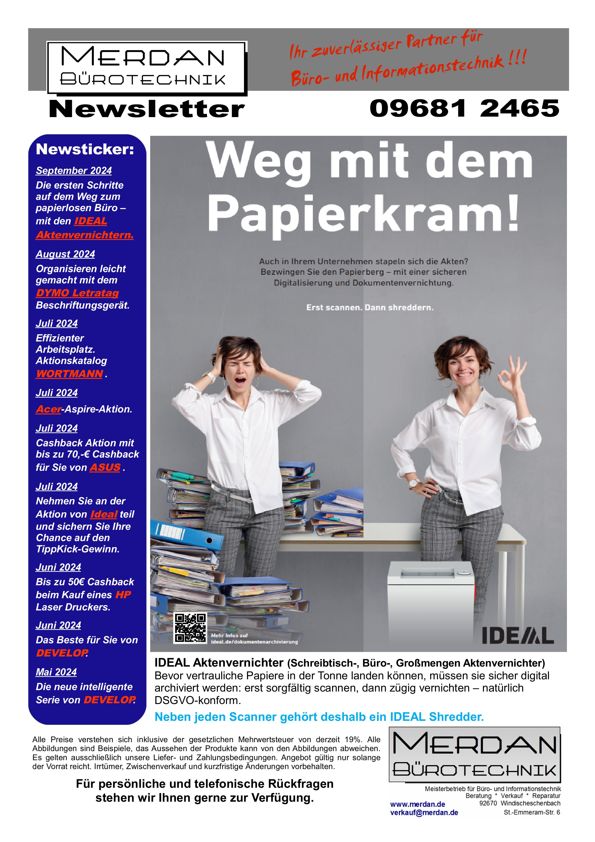 39KW2024 Newsletter Ideal Aktenvernichter Dokumentenarchivierung